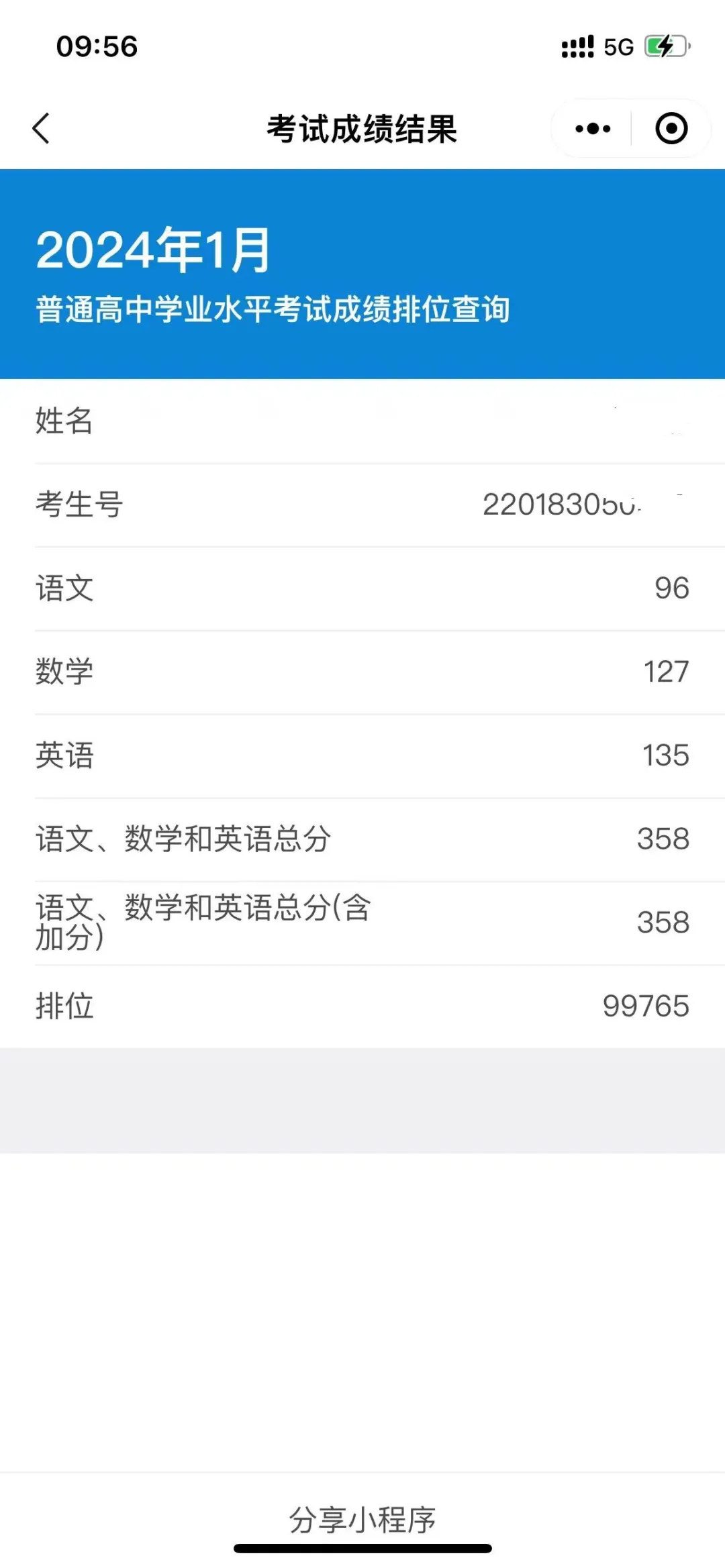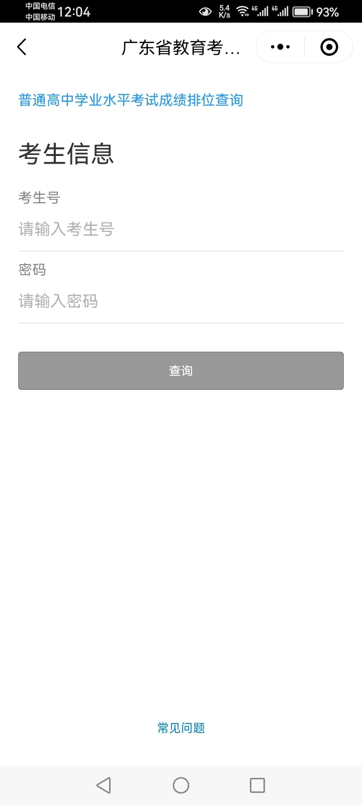 1、考试成绩及排位查询: